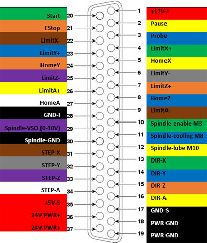The signal wiring is all 22-AWG stranded wire, and here’s the pinout that I used on the DB37 connector:
