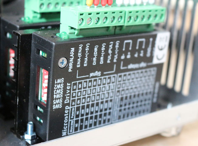 The output current of the stepper drivers is configured using DIP switches and I have them set for 2.8A output current, which is the rating of the stepper motors in my CNC router. I could have used a larger power supply and drivers that would be sufficient to run the larger 6A stepper motors I plan to use on the milling machine, so that a single power unit could run either machine. But that would require changing the DIP switches when moving it between machines, which is inconvenient and error-prone so I chose to dedicate this power unit to running medium-size steppers and to build a separate one for the mill. I could still use this power unit on another machine such as my metal lathe, as long as I use stepper motors with similar current requirements.